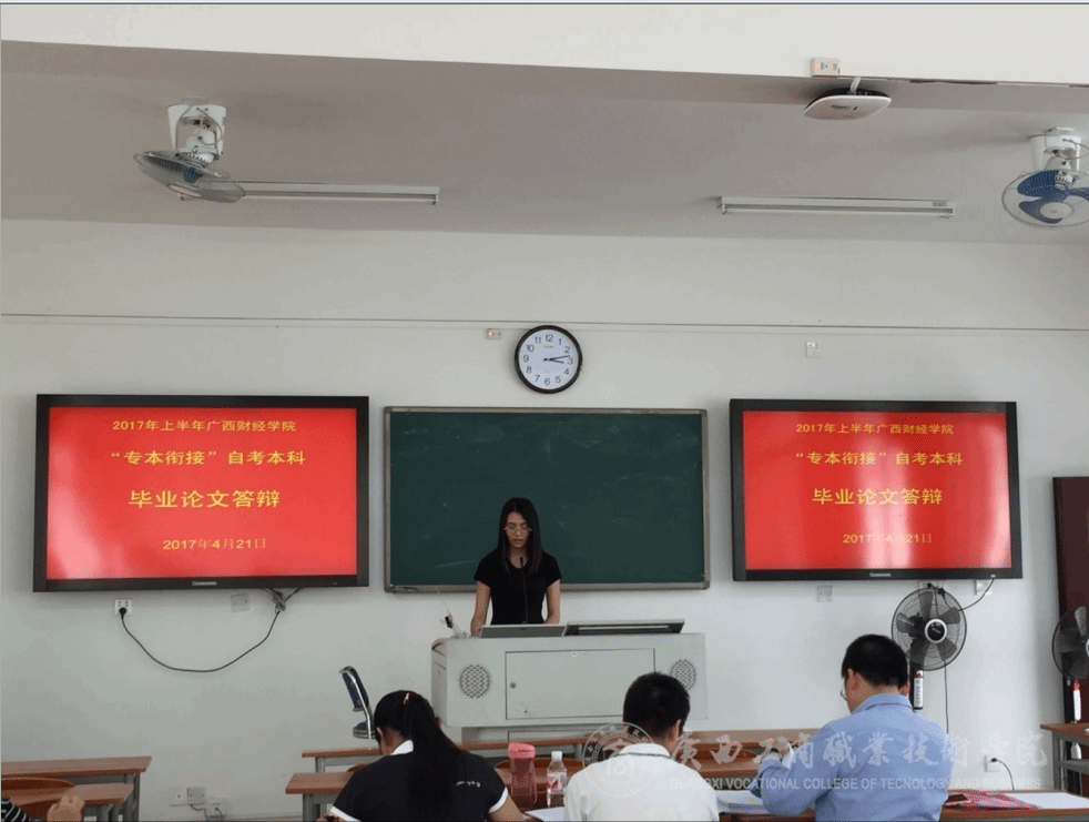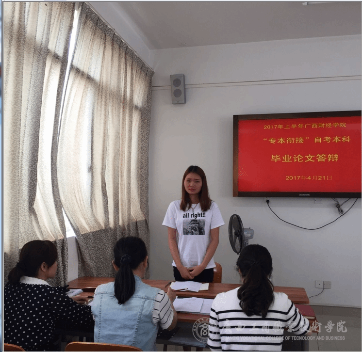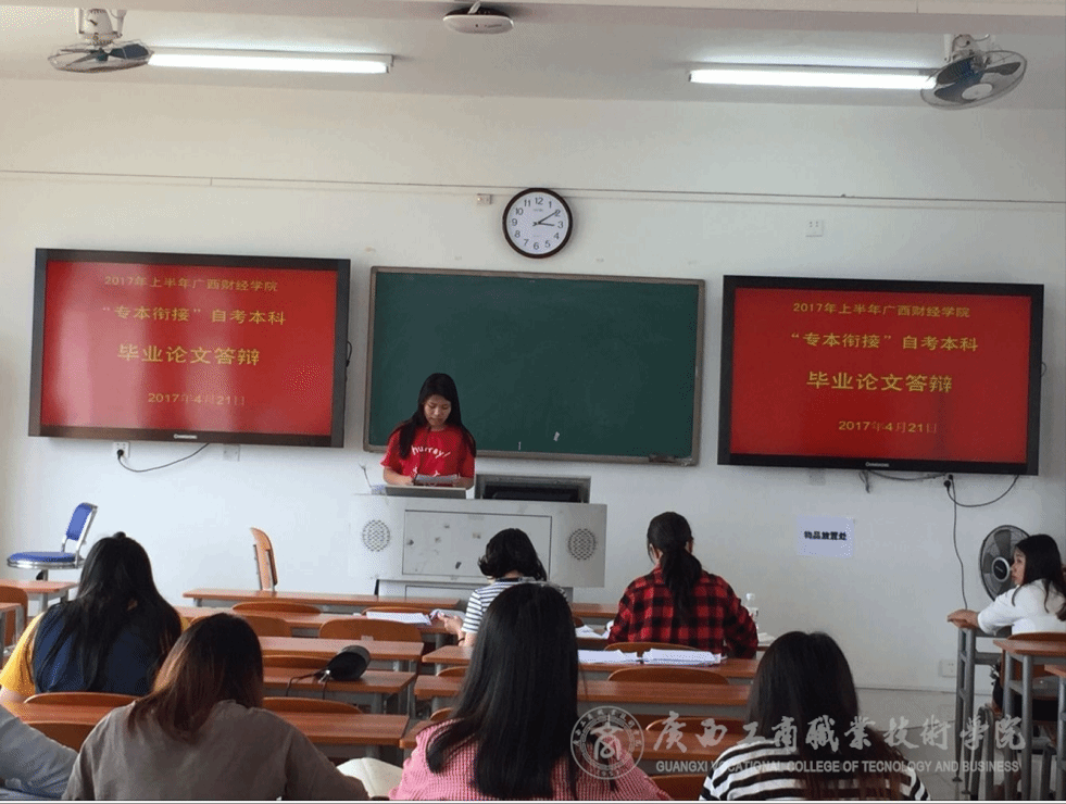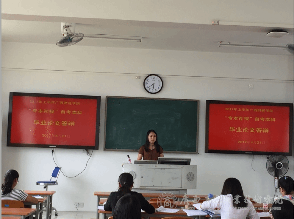 2017年4月21日下午,公司在校本部第二教学楼举行了广西财经公司“专本衔接”自考本科毕业论文答辩。