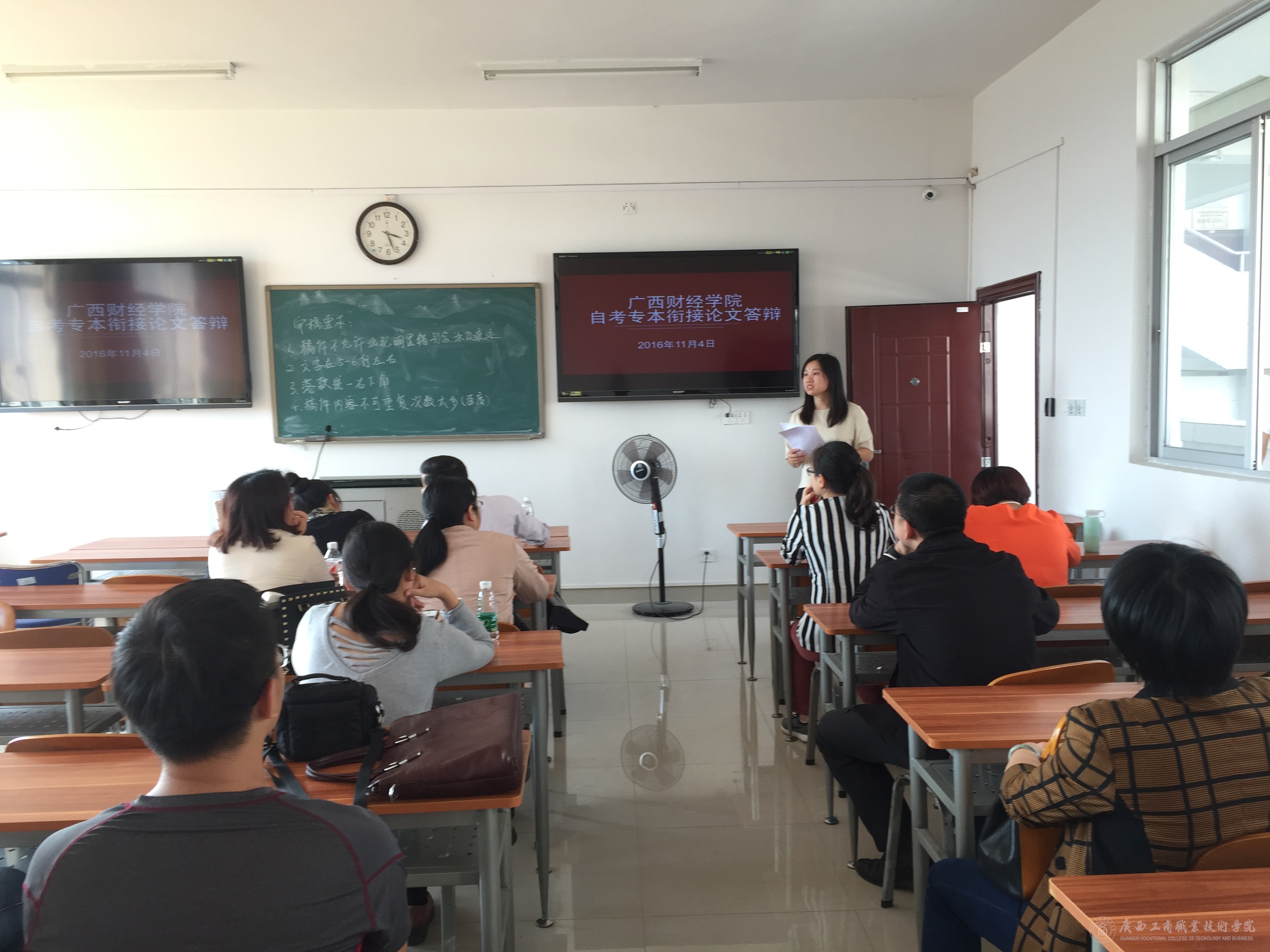 11月4日下午,继续教育部在校本部教学楼4楼开展自考专本衔接工商企业管理、市场营销两个专业的毕业生论文答辩,此次参加论文答辩的是与广西财经公司合作办学的自考专本衔接的员工。答辩工作得到了广西财经公司365英国上市公司的指导和帮助,同时,在公司内邀请了等12名专业老师担任本次答辩评委,62名员工分为4组分别参加了此次论文答辩。