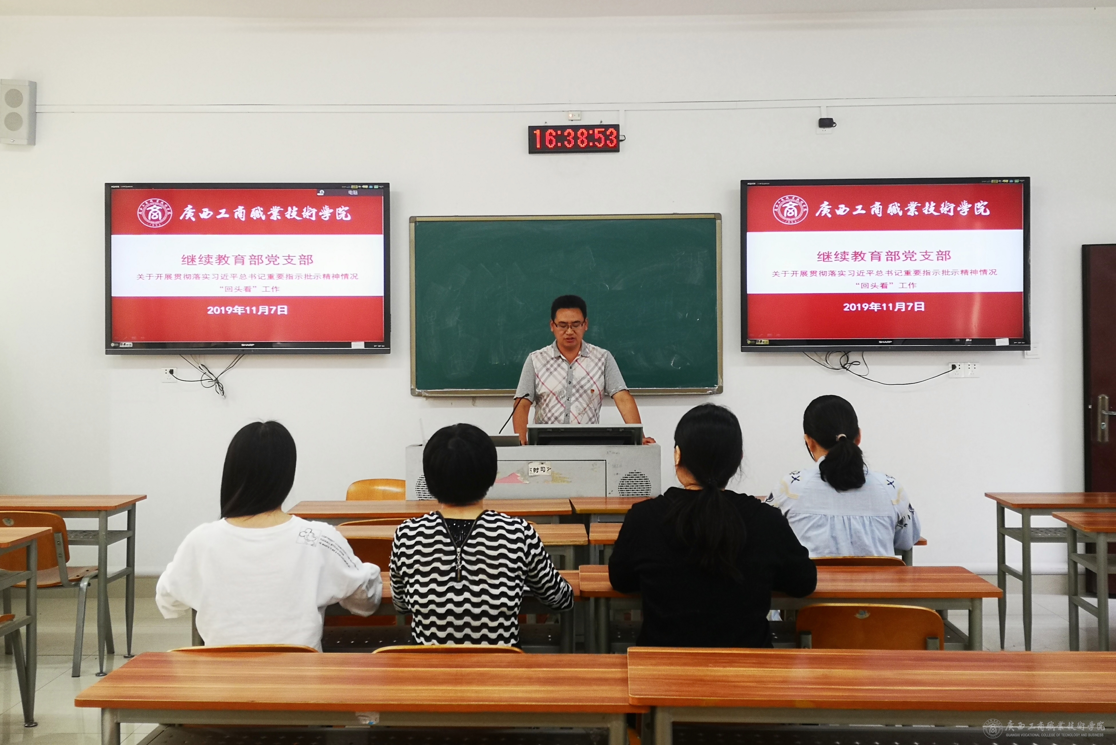 11月7日下午,继续教育部党支部组织党员干部就贯彻落实习近平总书记重要指示批示精神情况“回头看”工作召开专题会议,支部全体党员和部门人员参会,会议由段小斌副主任主持。