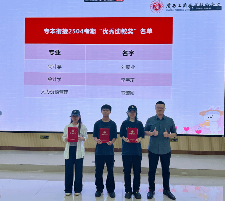 颁奖环节将活动推向高潮。根据同学们的成绩排名及课堂表现,在2024-2025学年自考专本衔接学习中,共推选出11名学习标兵、34名优秀员工和3名优秀助教。出席活动的季卉婕、高俊、梁辰紫伊 、黄小倩、蒋文利和黄景界6位授课教师为获奖员工颁发荣誉证书和奖品,以表彰他们的努力和成绩,激励更多同学向他们学习。